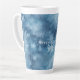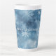 Taza De Café Latte Navidades de copos de nieve blancos y azules en in