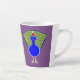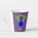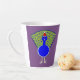 Esta impresionante taza de latte presenta a un Navidad brillante y atrevido, Peacock, usando un sombrero de Santa. El pájaro tiene un vientre azul brillante con una hermosa colección de plumas que se sostienen orgullosamente detrás. Las cucharadas son azules, marrones y verdes. El pavo real tiene grandes ojos negros y un bonito y pequeño pico gris.
