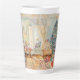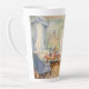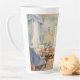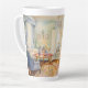 Navidades Morning Latte Mug - el escenario se encuentra en una sala de estar con un árbol decorado, regalos y una mesa. Los colores son una suave acuarela en tonos crema, azul, verde, rojo y azul. ¡Disfruta de este Navidad / bigote de vacaciones toda la temporada!