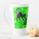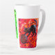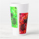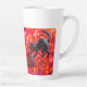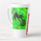 Bold two-tone cat coffee mug featuring a playful black cat with a yarn ball, printed in neon green on one side and fiery red on the other for a fun, eye-catching look. This bright pop art cat mug is perfect for coffee or tea lovers who enjoy colorful, modern designs.