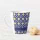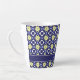 Taza De Café Latte Nombre de patrón de baldosas florales azules y ama