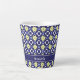 Taza de café con patrón floral marroquí azul y amarillo moderno. Personalízala con tu nombre.