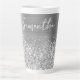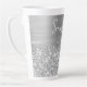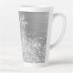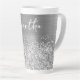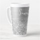 Personalizar el guión moderno de estilo manuscrito para crear tu propia gran taza de latte decorativa. Añadir un primer monograma para crear un diseño personalizado de combinación inicial de primer nombre. Con el nombre en la parte superior de la taza, hay mucho espacio si quieres cambiar el tamaño de la fuente para que se ajuste a su nombre. También se puede bajar un poco la imagen, por lo que hay más Relieves metalizados falsos que purpurinas falsos en el área de diseño. Tantas formas de personalizar este regalo para ella. Hay una sombra de caída gris aplicada al tipo de letra manuscrito. El purpurina de plata de imitación Girly y el arte digital inspirado en el Relieve metalizado gris metalizado se imprimirán como una foto en tu regalo.