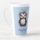 Taza De Café Latte Nombre e iniciales personalizados azules de pingüi