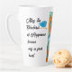 Impresionante latte mug con cita en la parte de atrás. En un pintoresco pueblo, el otoño vestió el mundo en cálidos tonos rojos y dorados. Entre las hojas, un perro de vaca llamado Chester rebanó. Su piel dorada era un abrigo acogedor contra el frío del otoño. Un día, mientras perseguía las hojas, tres pájaros voladores, tomando un descanso durante su migración, se unieron a la diversión. Sus plumas azules brillaban mientras se paseaban por las hojas, y la risa llenaba el bosque. En medio de la alegría, surgió un erizo llamado Hazel. La gentileza de Chester tranquilizó a Hazel, y el improbable grupo formó una amistad. Ellos exploraron el bosque, pateando las hojas oxidantes a medida que iban. Chester regresó a casa esa noche, llevando en su corazón la magia de aquel día de otoño, un recuerdo que siempre atesoraría.