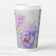 Diseño Pintado A Mano Pintado Pansies Púrpura Latte Mug. Un diseño floral de acuarela gloriosa. Diseñado a partir de mis pinturas acuáticas originales, que pinté desde mi propio jardín de flores.