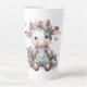 Taza De Café Latte Pastel dulce de vaca bebé en overoles con flores