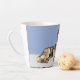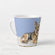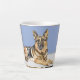 Esta taza de café con leche presenta una magnífica pintura de un perro pastor alemán o alsaciano reclinable. Esto sería un regalo perfecto para un amante del perro, y perfecto para trabajar en equipo con la misma vajilla de cocina.