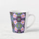 Taza De Café Latte Patrón de flor de margarita rosada retro