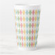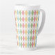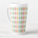 La moderna y elegante jarra de latte tiene un patrón de diamante de argyle de colores pastel sobre fondo blanco.