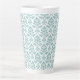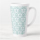 Taza De Café Latte Patrón Verde azulado de Feuille Damask