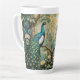Taza De Café Latte Peacock Jungla floral Verde azulada dorada