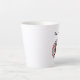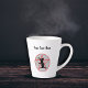 Esta taza de latte tiene un pentagrama rojo sobre un fondo gris bordeado por un círculo rojo con la silueta de un gato negro sentado sosteniendo una estrella de oro. Personalizar tu texto en la parte superior con la plantilla.