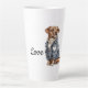 Taza De Café Latte Perro en la Chaqueta de Denim Azul