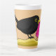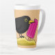 El divertido y simpático personalizado kawaii blackbird comiendo una pala en la playa en un caluroso día soleado de verano. El helado está condimentado con fresa y le gusta mucho.