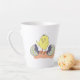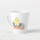 Una linda jarra de café con leche de Pascua con dos adorables personalizados amarillos que salen de su concha de huevo decorada. © ArianeC Ilustraciones-Todos los derechos reservados