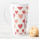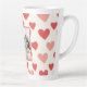 This personalized Valentine latte mug features a playful red and pink heart pattern paired with your favorite photo, creating a romantic and cheerful design perfect for daily use. The tall latte shape is ideal for coffee, lattes, tea, or cozy drinks shared together.