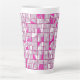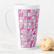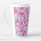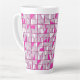 This latte mug features a striking geometric block pattern in alternating shades of pink, magenta, and white, creating a dynamic, contemporary design with a subtle three‑dimensional effect.