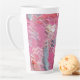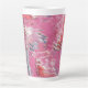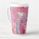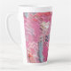 Este arte abstracto, gráfico, retrata una colorida gama de peces nadando, en una piscina de colores vivos rosados, rojos, morados, azules y dorados.