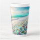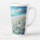 Taza De Café Latte Playa del Océano bonito con cristales marinos