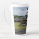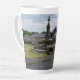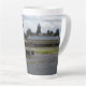 A scenic wide-angle photograph featuring the stone-carved Prescott Fountain situated on a grassy verge in Halifax. In the background, the ornate clock tower and slate roofs of Crossley Heath School stand against a soft, overcast sky. This image captures the unique blend of industrial heritage and Victorian stonework characteristic of West Yorkshire.