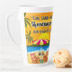 Taza De Café Latte presupuesto para la puesta de sol en la playa