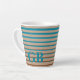 Taza De Café Latte Rayas Frías Marrón y Azul Monogramadas