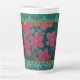 Bright red flowers are presented on lovely aqua-flowered background, a nice example of mixed-media artwork.
