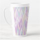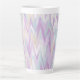 Un diseño de chevron abstracto en una paleta morada, turquesa, marfil y blanca.