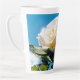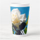 Taza De Café Latte Rosa blanca bajo cielo azul