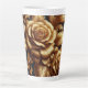 Taza de Latte Rosa Metálica Dorada Dark Academia, © Dark Heart Desires. Un diseño de Dark Academia con rosas doradas sobre un fondo oscuro.