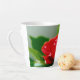 Taza De Café Latte Rosa roja matutina cubierta de rocío