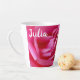 Una hermosa fotografía original de un ramo de flores con un rosa de té híbrido rosa caliente y pequeñas margaritas blancas. Esta hermosa foto de una flor le da un toque bonito a esta taza de café con leche personalizado. Personalízalo con su nombre o cualquier texto si lo desea. ¡Hace un regalo único para cualquier amante de los rosas o jardinero!