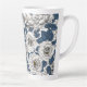 Taza De Café Latte Rosas blancas con hojas azules