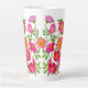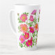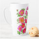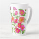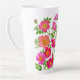 Una hermosa y alta taza de latte de cerámica, perfecta para el café matutino, con rosas silvestres rosados de bonito de la diseñadora Carolyn McFann de Two Purring Cats Studio.