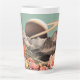 Taza De Café Latte Saturno Surreal Sobre el Valle de la Montaña