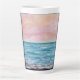 ¡Siente que estás de vacaciones con este café latte! Espectaculares cielos rosas y rosas sobre el océano.