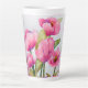 Hermosa taza de café con leche floral.