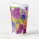 Hermosa taza de café con leche floral.