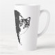 A bright-eyed tabby pauses mid-step, tail curved and curious. Morning sips feel a touch more seasonal for cat devotees.