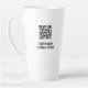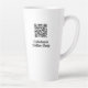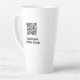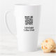 Bar, Restaurante O Cafe latte café mug "con código QR. Muestra tu propio diseño de código QR. ¡Que otros escaneen tu código QR con sus teléfonos móviles! Reemplace la imagen con su propio código QR cargado. Incluye el nombre del establecimiento. Blanco y negro. Hay varios sitios web que permiten crear y descargar códigos QR gratis. Se pueden crear códigos QR para sitios web, correos electrónicos, Wifi, tarjetas virtuales y muchos otros usos. Un ejemplo es https://www.qr-code-generator.com