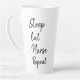 En una clásica taza blanca de latte se encuentra el texto "dormir, comer, comer enfermeras repetir" en escritura manuscrita donde se puede cambiar el texto para personalizarlo a tu propio texto. Modernas vibraciones minimalistas.