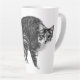 A shaded tabby bends mid-step, whiskers bright like tiny lights. Morning sips feel kinder and perfect for the cat-loving friend list.