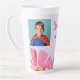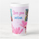 Te Amo, Mamá Flores Rosa 2 Fotos Latte Mug. Flores rosas sobre un fondo rosa de color rosa y dos fotos. Crea una taza personalizada para una madre para el Día de la Madre, cumpleaños o Navidades y agrega tus fotos.