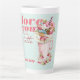 Silencio de latte personalizado escrito con "te quiero un latte". Diseño cuidado con patrón retro de punto de polka y ilustracion de una jarra de latte llena de fresas y crema, macarones, donuts y dulces.