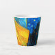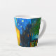Latte Mug presenta la pintura al óleo de Vincent van Gogh Café Terrace en la noche (1888). Las estrellas amarillas pintan el cielo azul de la noche sobre un café al aire libre en Francia. Un regalo maravilloso para los aficionados al post-impresionismo y al arte holandés.