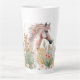 A Beautiful Latte Mug Of A Beige And White Horse And Autumn Leaves And Florals