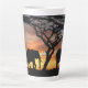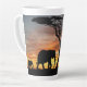 Taza De Café Latte Tres elefantes en altura al atardecer