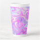 El diseño presenta un giro de mármol multicolor en un esquema de color rosa, violeta y turquesa.