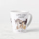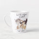Aquí hay una linda taza de café con leche para cualquier amante del gato. Cuenta con cuatro divertidos gatos en diferentes colores y tipos, con el texto de arriba y abajo que dice "¿VIDA sin GATOS? No lo creo". La imagen y el texto están impresos en dos lados.